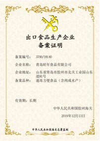 旺年堅(jiān)持以食品安全作為發(fā)展的基石,除通過(guò)ISO9001、HACCP等體系認(rèn)證外,還成為業(yè)內(nèi)為數(shù)不多具備出口食品生產(chǎn)資質(zhì)的企業(yè)之一,產(chǎn)品出口美國(guó)、加拿大等多個(gè)國(guó)家和地區(qū)。